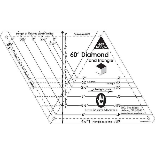We used the from marti michell 600 triangle ruler to cut the triangles and a regular ruler to cut the 60 degree diamonds. Time to make a fun block. An assortment of both 45 and 60 degree blades for the uscutter sc series vinyl cutter. Please make sure to print in 100 or actual size so the rulers would stay true to size.