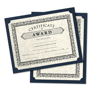 Choose award holders with wood metal or plastic frames. Certificate paper is a specialty paper designed for awards achievements and diplomas. It comes in varying weights designs and textures that provide an elegant and distinguished flair to the printed words and images. This extends the life of your certificate and adds a classic touch to awards ceremonies.