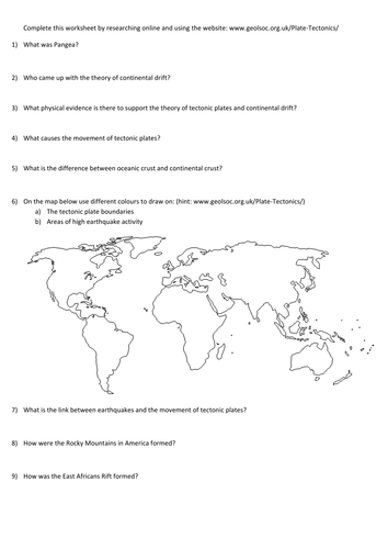 Continental Drift And Plate Tectonics Worksheet Crossword