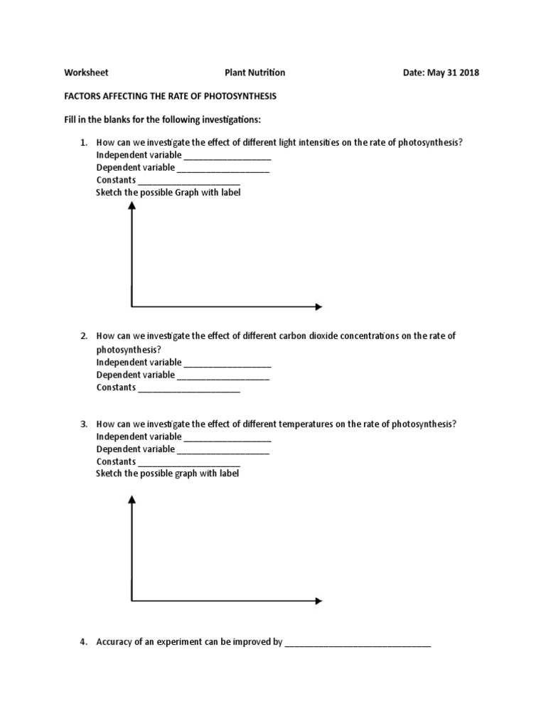 Worksheet On Factors Affecting Photosynthesis Fill Online
