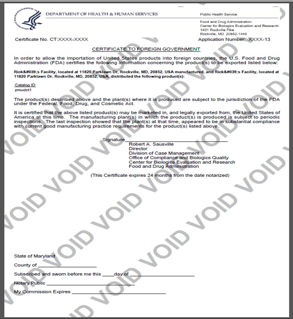 Fda export certificate. This certificate states among other things that a product or products. The certificate to a foreign government is available for conventional foods food additives food contact substances and infant formula that meet the applicable requirements of the fdc act for marketing in the united states. Firms exporting products from the united states are often asked by foreign customers or foreign governments to supply a certification relating to products subject to the federal food drug. Industry may request most types of fda issued export certificates for food products through the cfsan export certification application and tracking system cfsan ecats.
