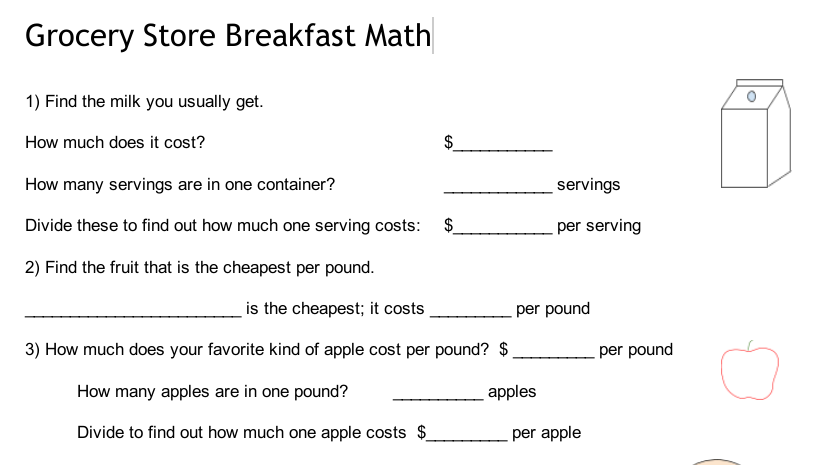 Grocery Math Worksheets Teachers Pay Teachers
