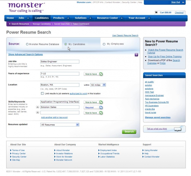 How to search resumes in monster. This way you can modify your own monsterca resume to your best advantage. Try power resume search 30 days access search and view up to 50 resumes. Review the tips for boolean users below to make your search successful with boolean logic. Power resume search test drive.