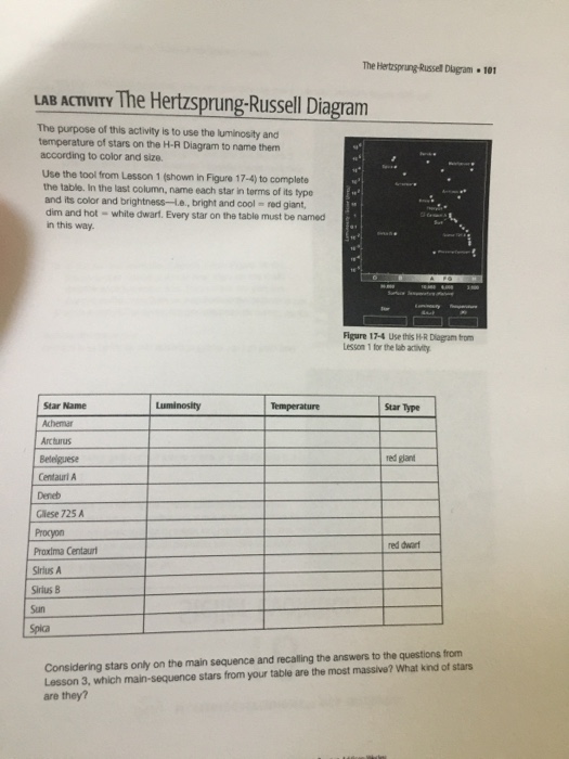 Lab Activity Hertzsprung Russell Diagram Purpose Objective