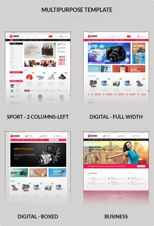 Buy ecommerce joomla templates from 19. Enhanced with powerful theme options modern design and useful. The perfect choice for any ecommerce site e shop. Joomla e commerce templates from joomlashine are optimized for joomla online store with impressive product showcases friendly checkout process and more.