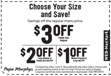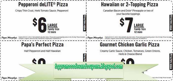 Find our pizza near you and order online. All coupons 9 promo codes 4 online sales 3 in store offers 2 25 off. Customers are fond of the no frills orders on phone as well as the availability of discounts on main fare and side orders. Print the coupons below and take to a participating papa murphys to save.