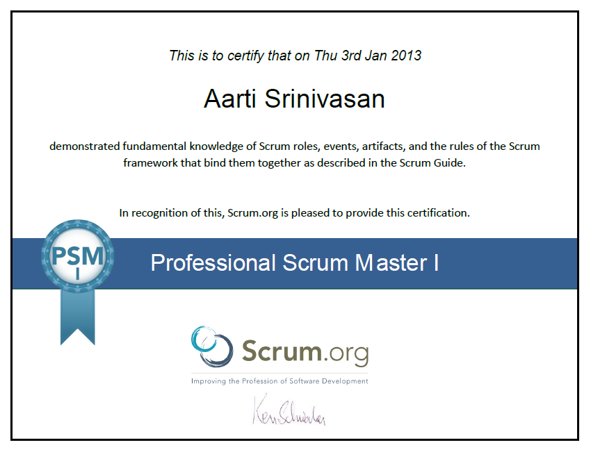 Other certifications can easily be obtained by attending a scrum master training or through an exam where failing could only happen by intention. I have just finished my psm i certification with 938 and your learning test was a huge help for me. I tried to search for articles or blogs about peoples experience on their preparation for psm1 certification. If thats sound familiar you are on the right article.