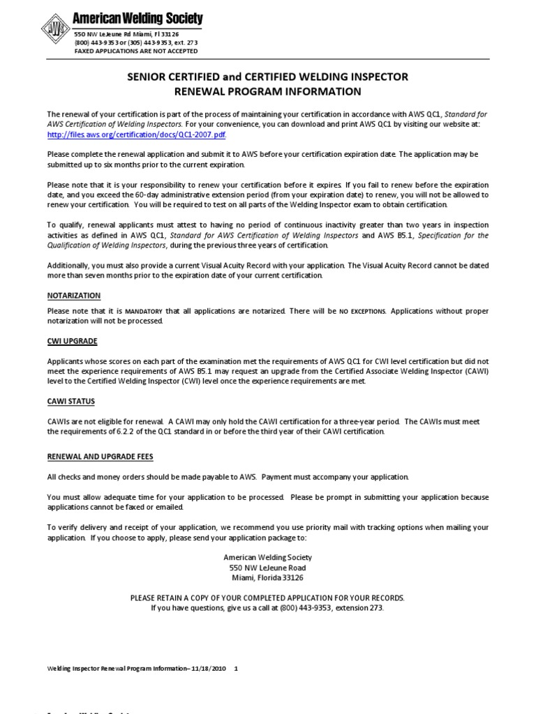 Fillable Online Aws Certified Welding Supervisor Renewal